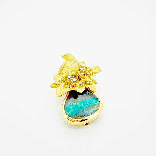 18K Gold Boulder Opal Pendant / Brooch
